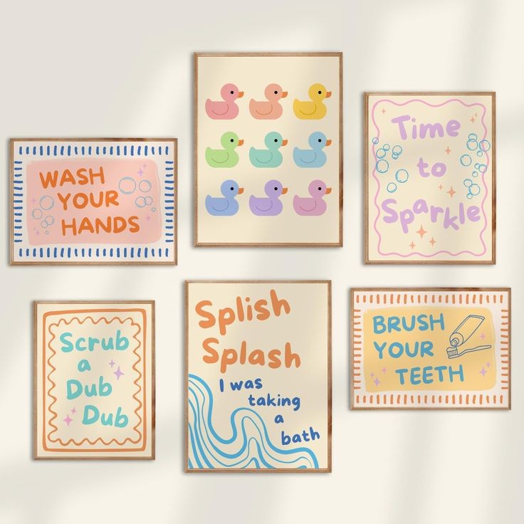 Bathroom Wall Art 13, Set of 6 (2 A5, 2 A4, 2 A3)